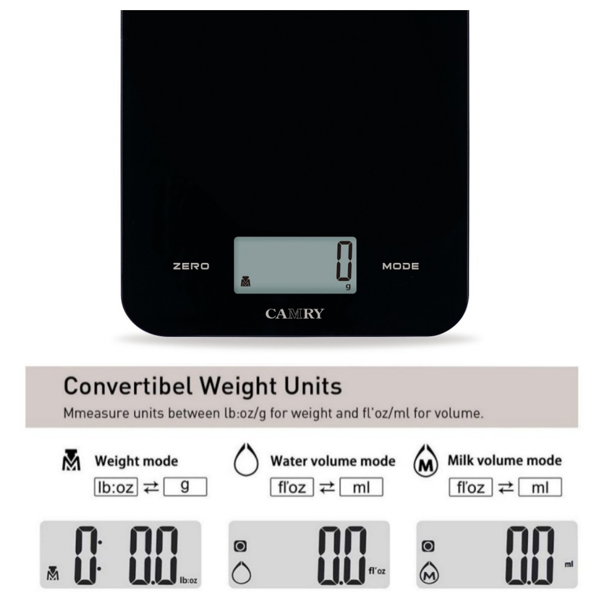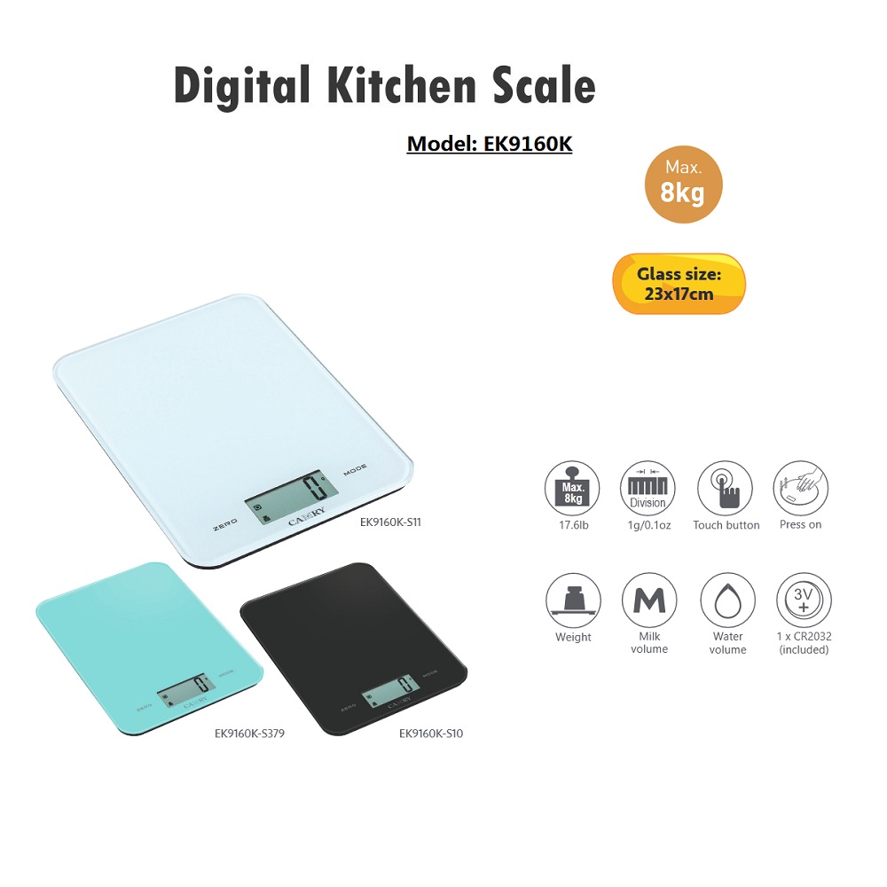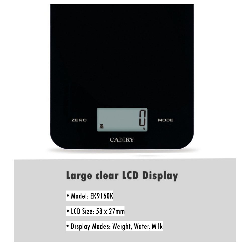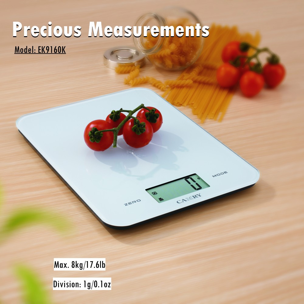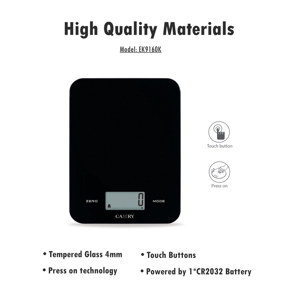 【Tempered Glass Kitchen Scale with Large LCD】This Camry Digital Kitchen Scale is built with 4mm tempered glass and large LCD Display. With the touch button and press on technology it provides more simple operations for your weighings: easy tare, easy units conversion and easy on and off.