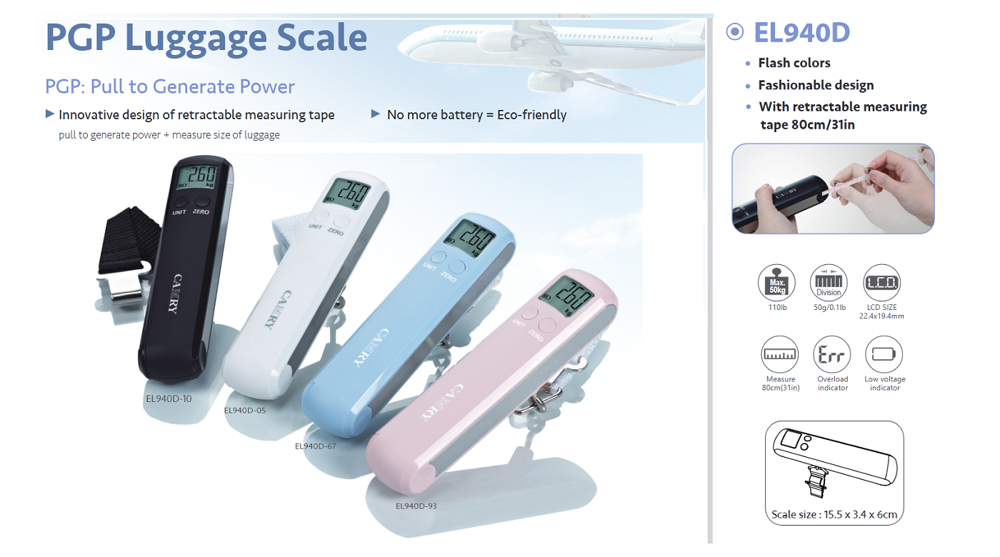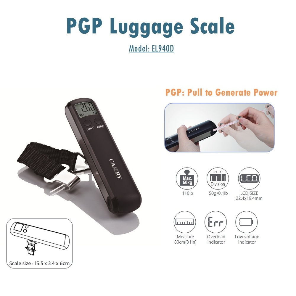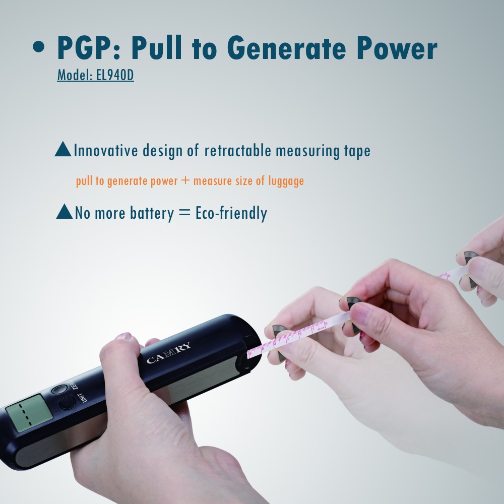 【PGP Luggage Scale with Measuring Tape】This Camry Digital Luggage Scale is made of PGP technology, it can be charged by pulling the measuring tape which is also built inside. Combines weighing, measuring and charging together.