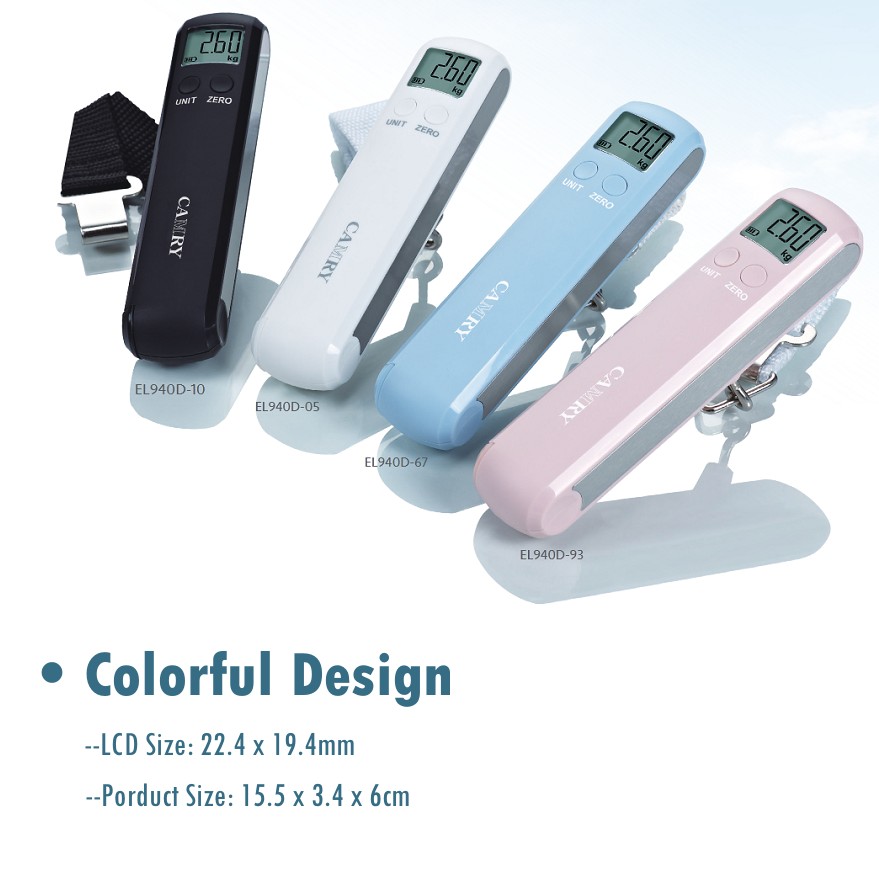 This Camry luggage scale has a capacity of 50kg/110lb with a division of 50g/0.1lb, large enough for most travel needs. With a LCD size of 22.4 *19.4mm it provides really clear readings for each weighing.