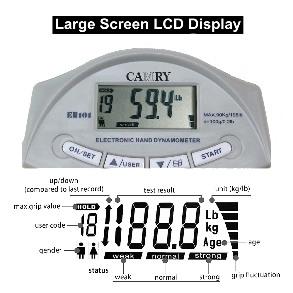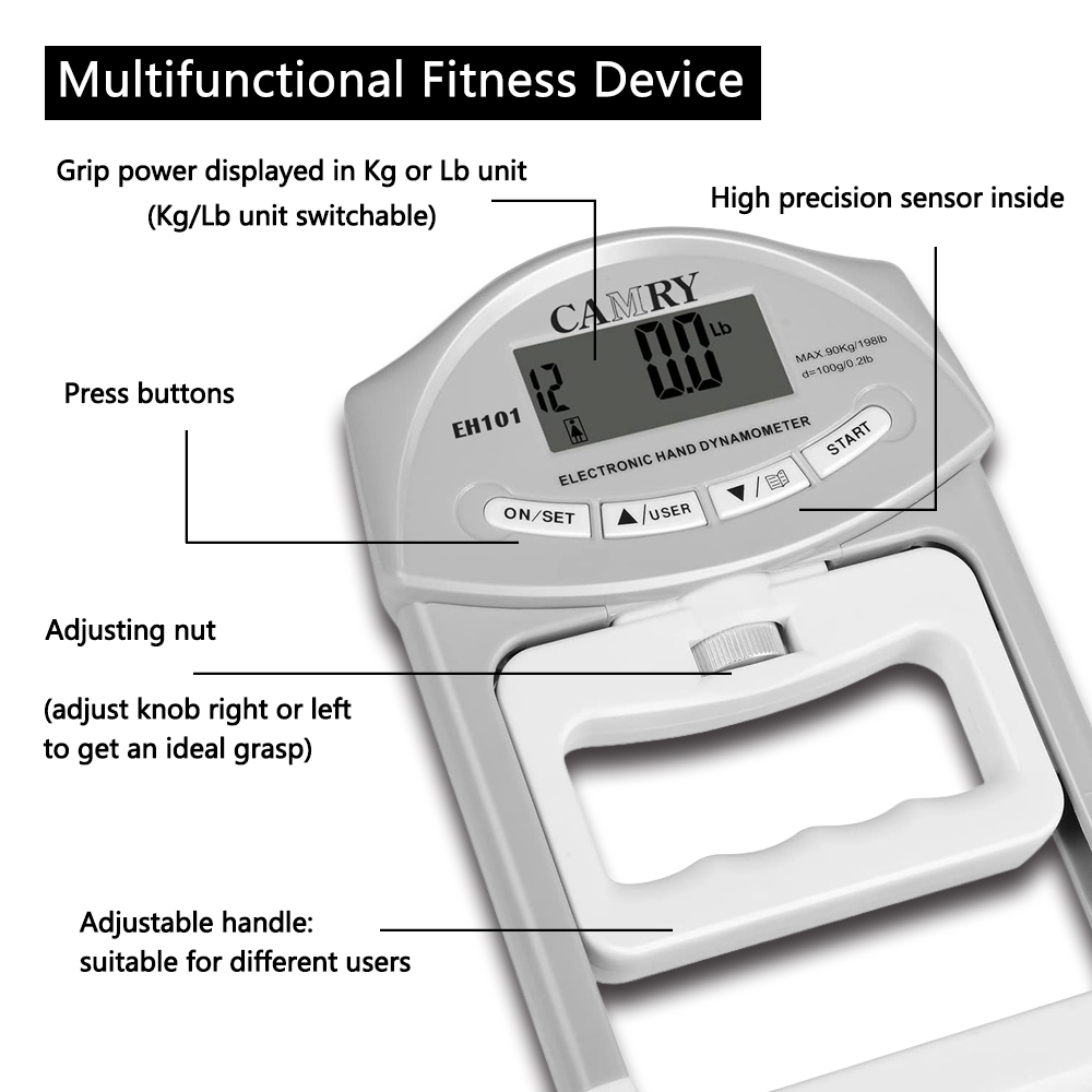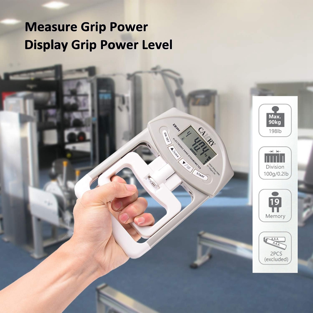 Electronic hand dynamometer accurately measures grip strength up to 90kg/198lb with 100g/0.2lb precision.Features real-time grip power level display and memory function to track performance progress.