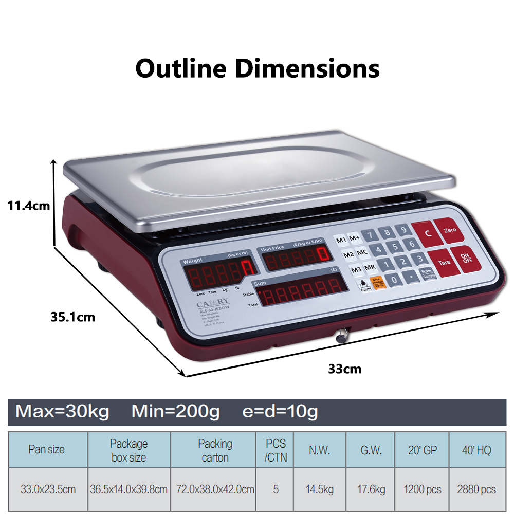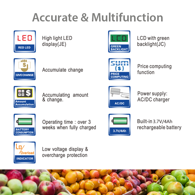 *LCD/LED Dual display: weight, unit price and amount