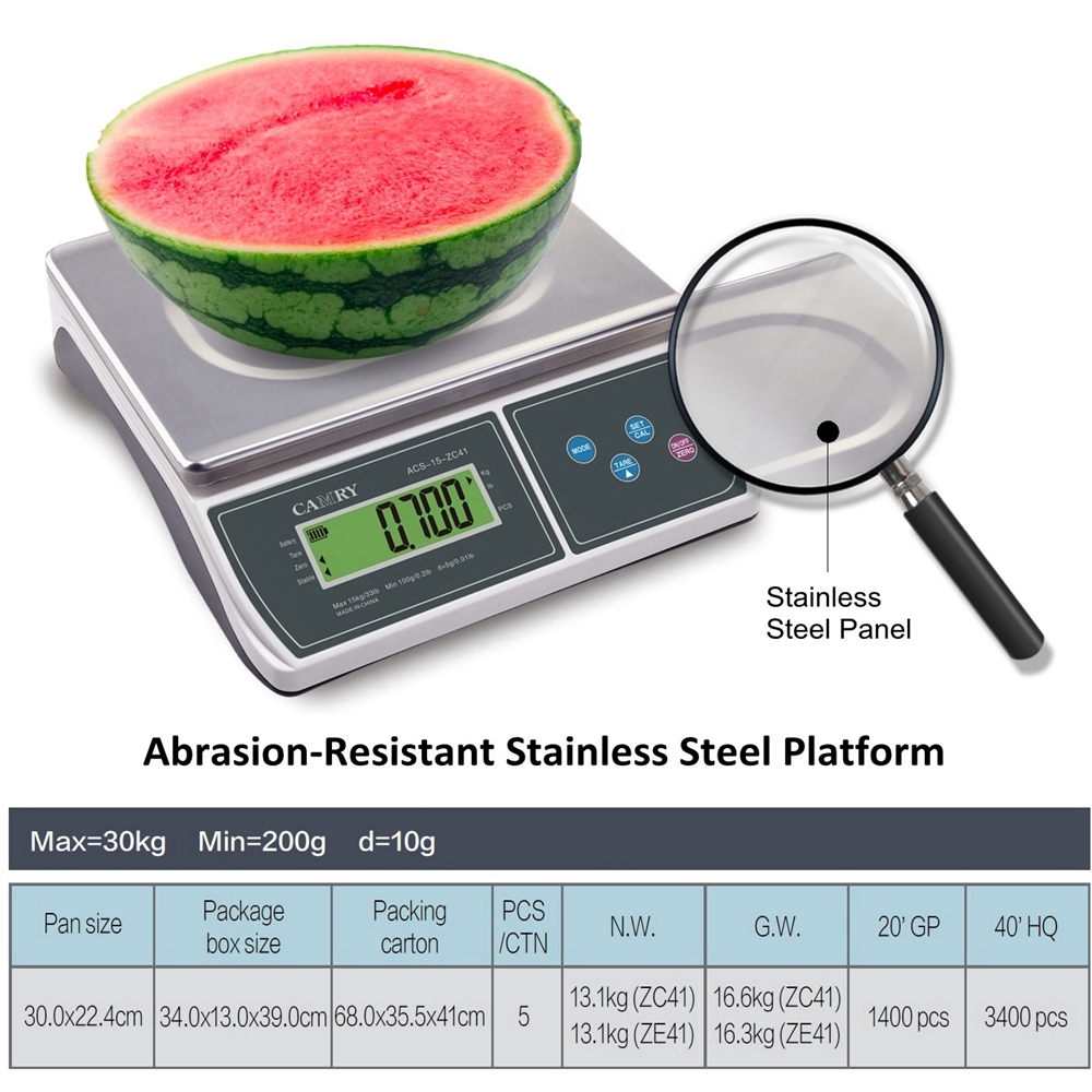 Abrasion-Resistant Stainless Steel Platform,30kg Max,Ideal for Heavy-Duty Commercial Weighing.
