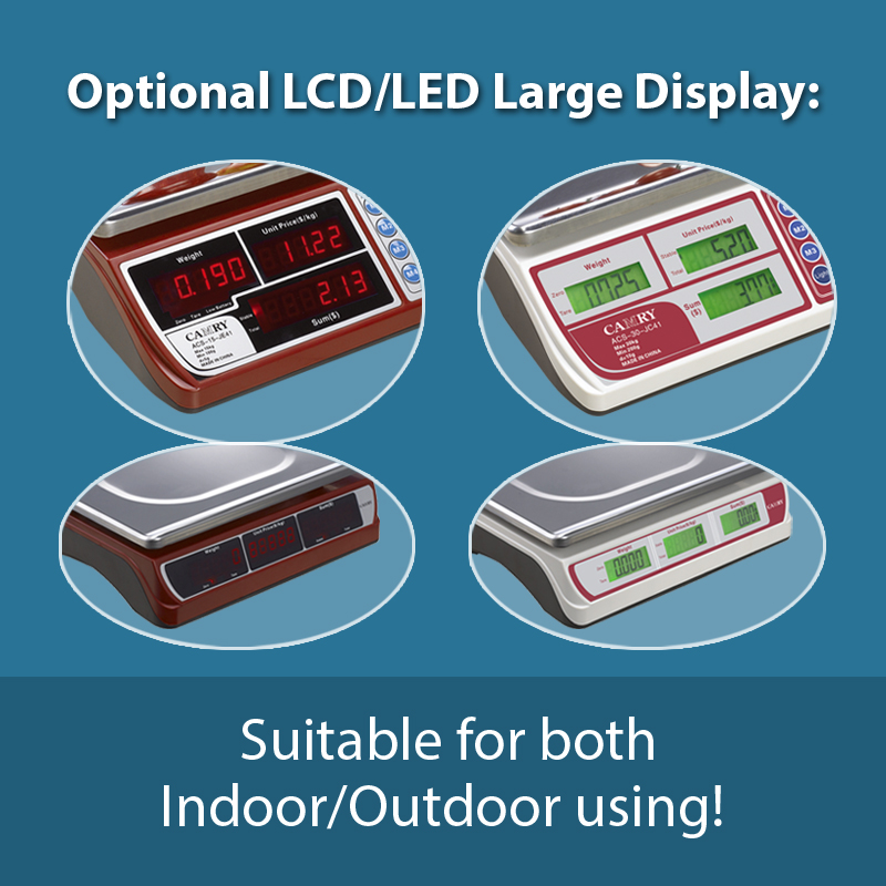 LCD/LED Optional Price computing function Accumulating amount and change Last over 4 weeks when battery fullly charged