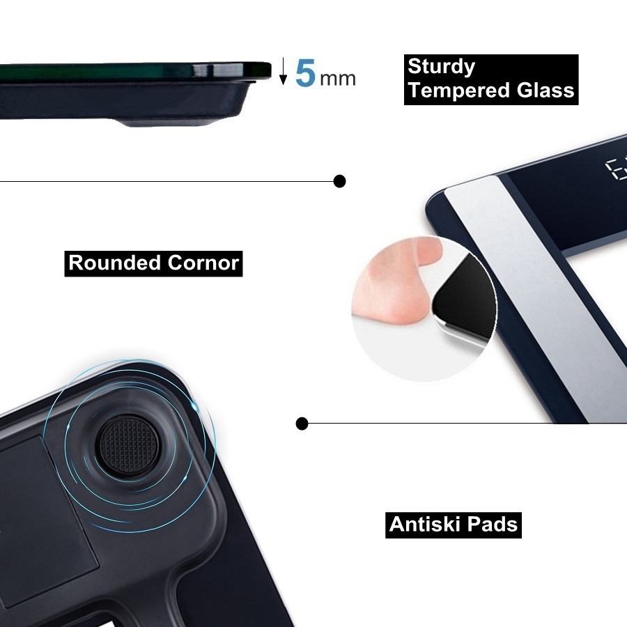 Auto on/off, Auto calibration, Low battery indicator, Overload indicator; Round-corner design; lock your weight and provide instant reading in a short time.