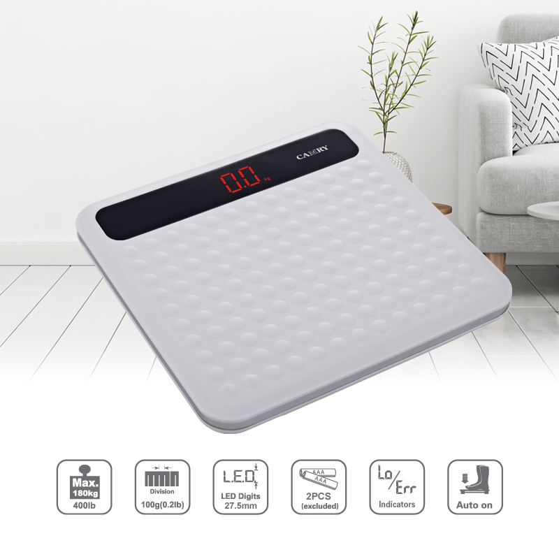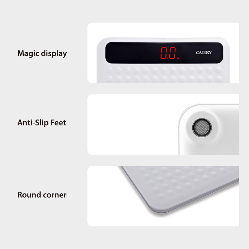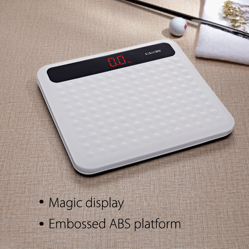 The personal scale is designed with embossed ABS platform and Magic LED display. It has rounded corners make the scale look sleek, provided added safety.