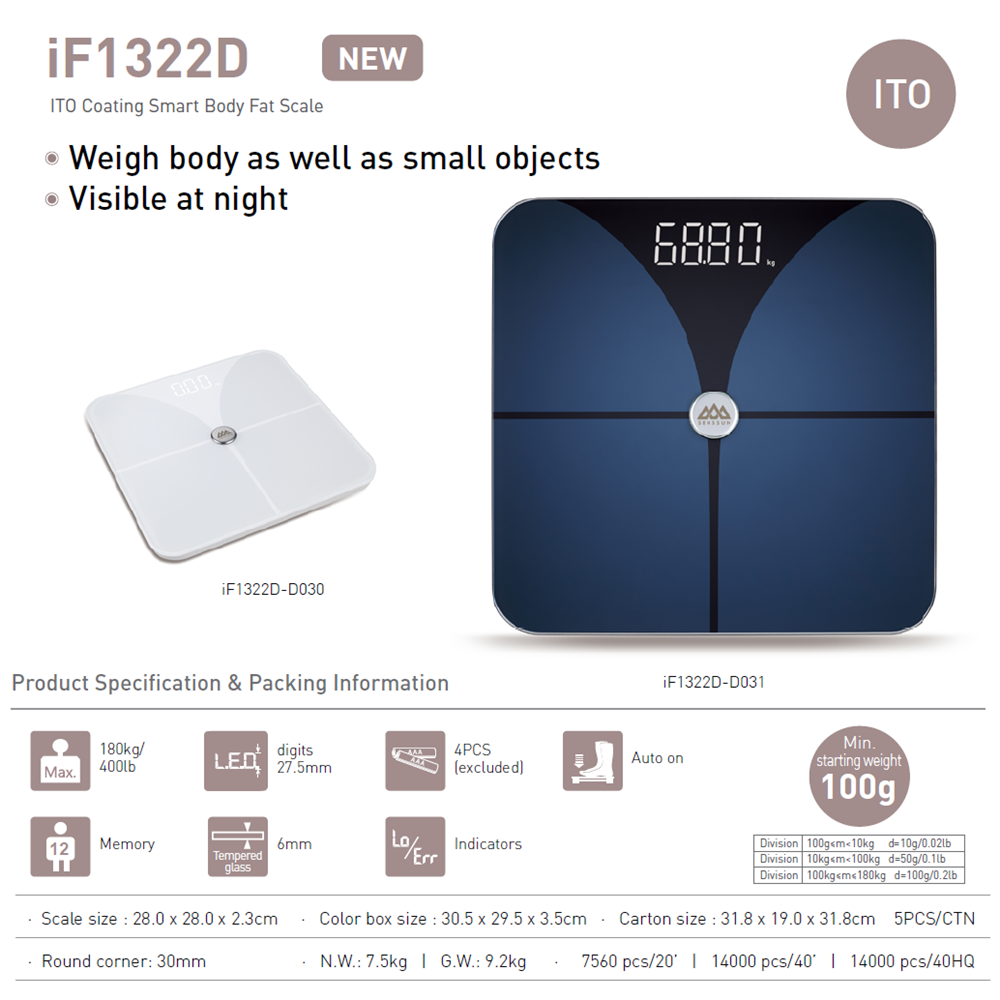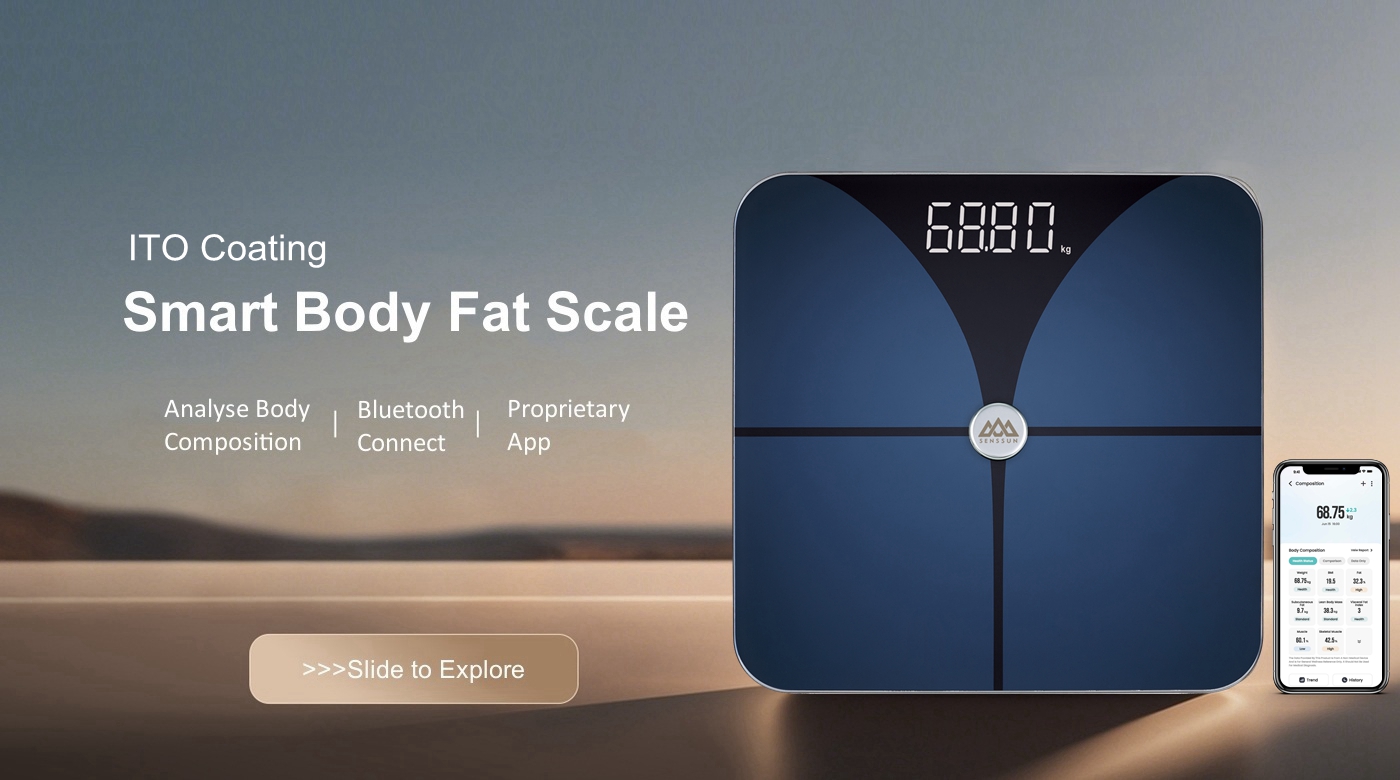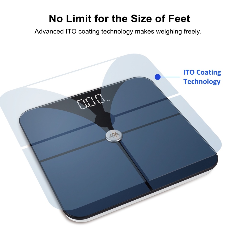 An ITO coating of the tempered glass used on Senssun Scale gives highly accurate body composition measurements wherever you stand.