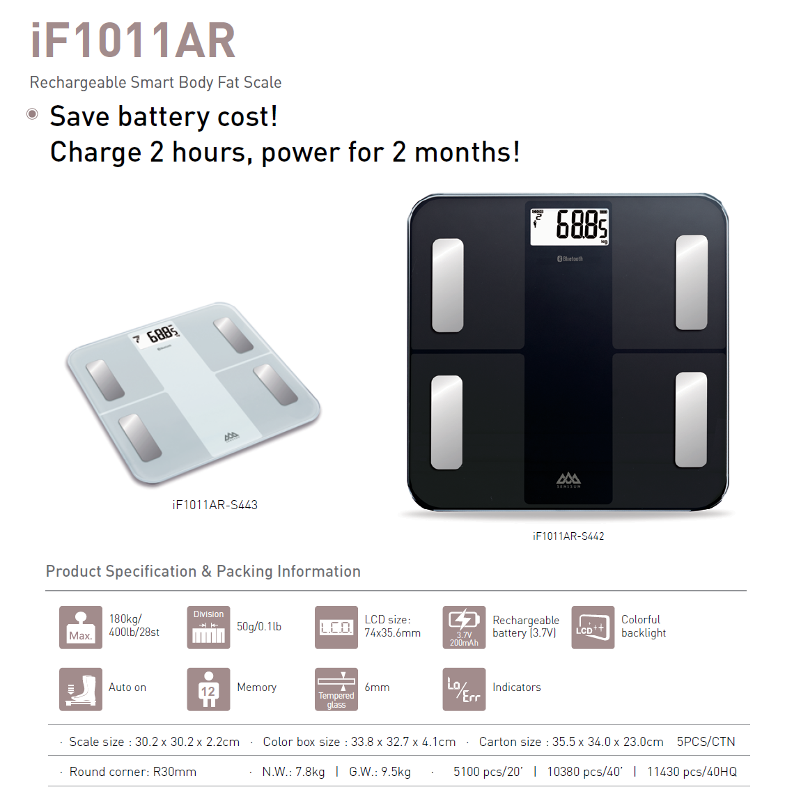 *6 colors LCD display, stands for different body fat levels.