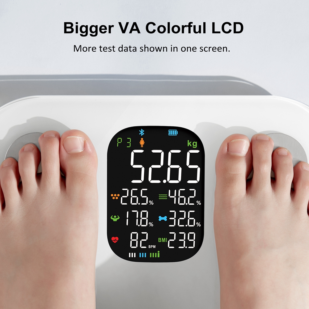 *Build-in Bigger VA colorful LCD, more test data shown in one screen. Can measure heart rate