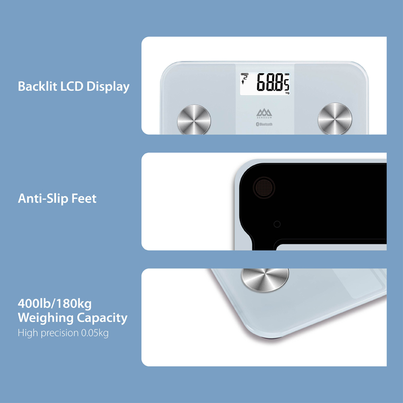 Backlit LCD Display. Anti-Slip Feet. 400lb/180kg Weighing Capacity. High precision 0.05kg