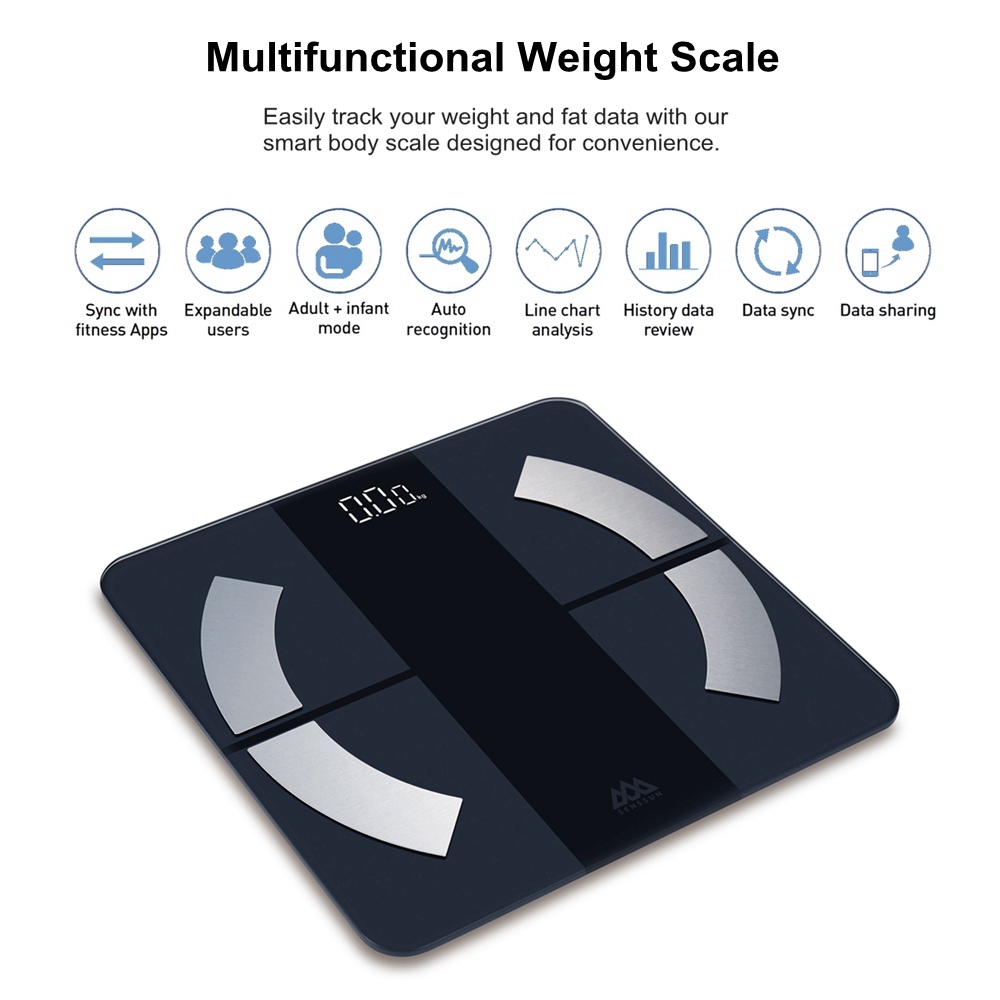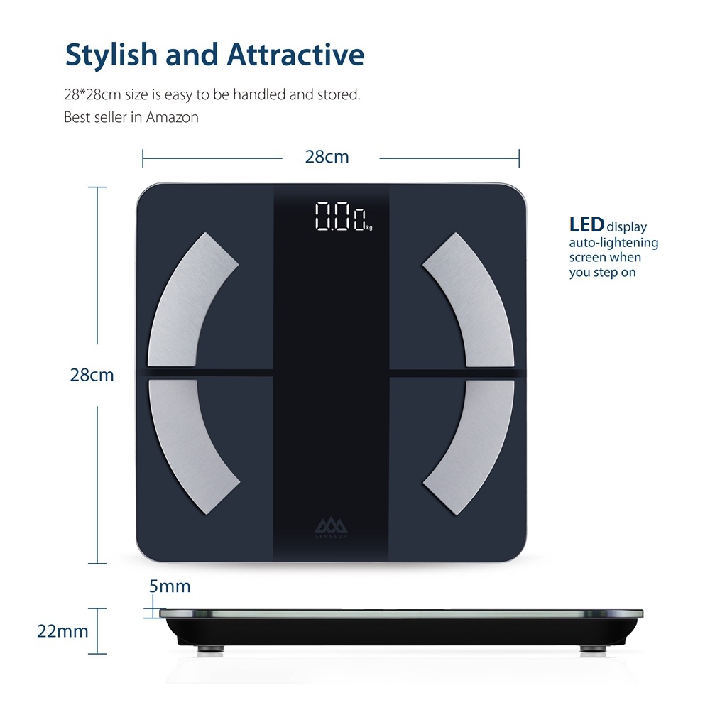 Senssun Smart Scale can measure your weight, body fat percentage, BMI, muscle mass, and other body composition metrics and sends them wirelessly to the free iMoni app. You can see that you are losing weight or gaining muscle over time.
