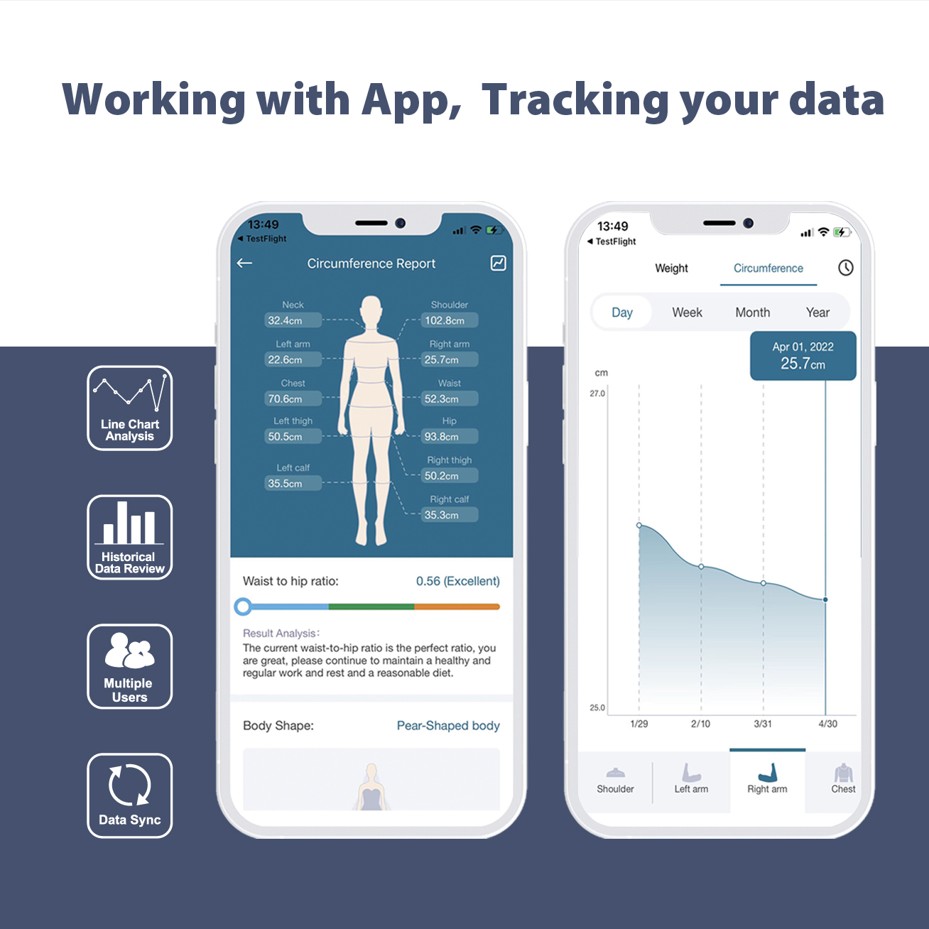 The eight-electrode body fat scale, using the two-frequency biological impedance + 8 contact measurement technique, accurately measured the body of 5 sections of fat and muscle content, more clear result data.