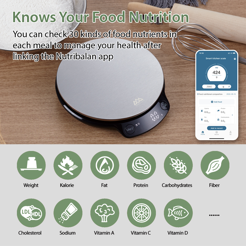 The extensive food database in Nutribalan APP contains 30 nutritional analysis for each meal, such as calories, protein, fat, carbohydrates etc. The smart nutritional scale allows you to manage the nutrition and calories of food, helping you enjoy healthy life.