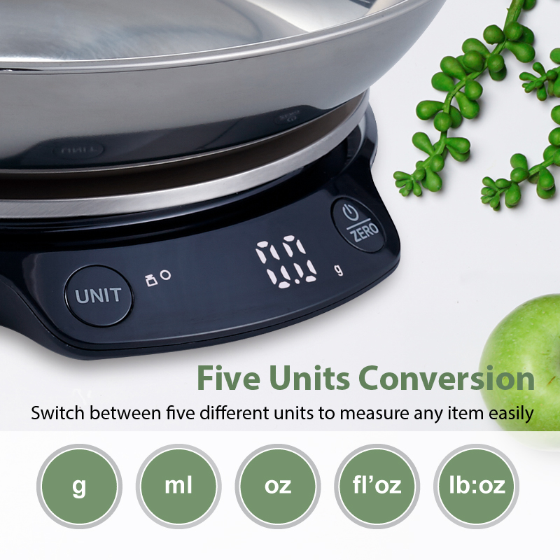 Our nutritional scale provides with an easy-to-control buttons ' UNIT' to simply convert weight and volume units (g, ml, oz, fl'oz, lb:oz). Delivers accurate results and effectively measure in grams, ounces, pounds.