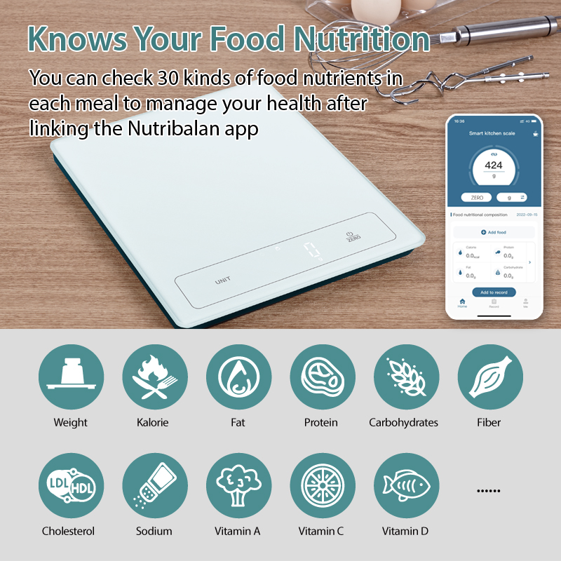 The extensive food database in Nutribalan APP contains 30 nutritional analysis for each meal, such as calories, protein, fat, carbohydrates etc. The smart nutritional scale allows you to manage the nutrition and calories of food, helping you enjoy healthy life.