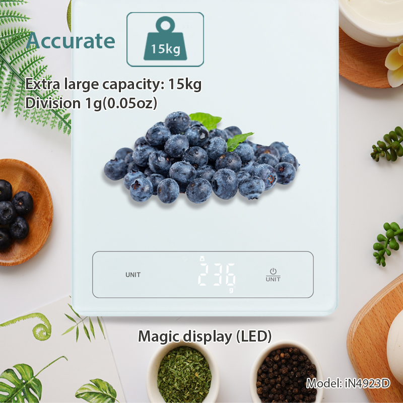 The nutritional scale equipped with four high-precision sensors that weigh from 1g(0.05oz) and it has extra large capacity to 15kg(33lb), which can meet any needs while cooking, baking or meal prep and ensure your creation is perfect according to the recipe.