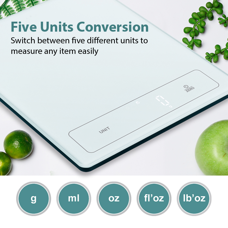 Our nutritional scale provides with an easy-to-control buttons ' UNIT' to simply convert weight and volume units (g, ml, oz, fl'oz, lb:oz). Delivers accurate results and effectively measure in grams, ounces, pounds.