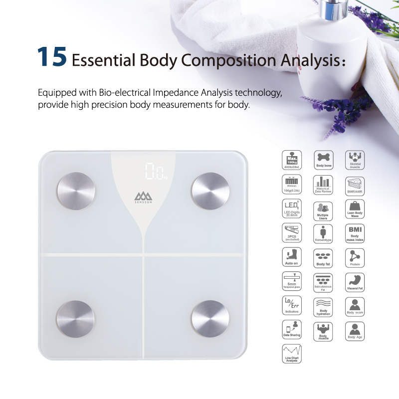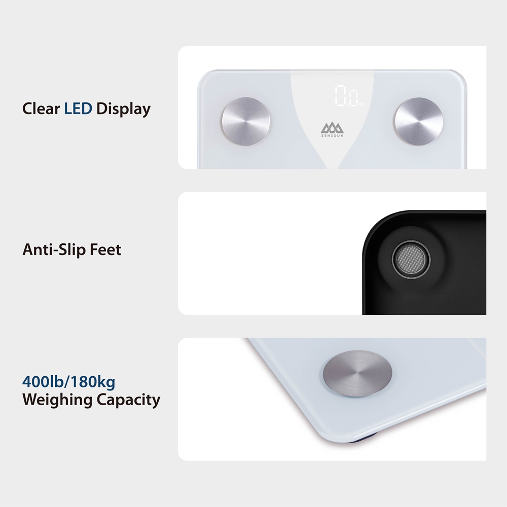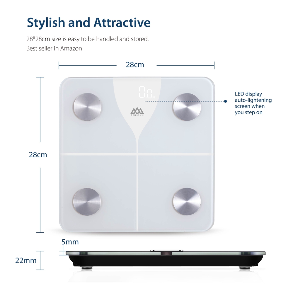 Senssun Smart Scale can measure your weight, body fat percentage, BMI, muscle mass, and other body composition metrics and sends them wirelessly to the free iMoni app. You can see that you are losing weight or gaining muscle over time.