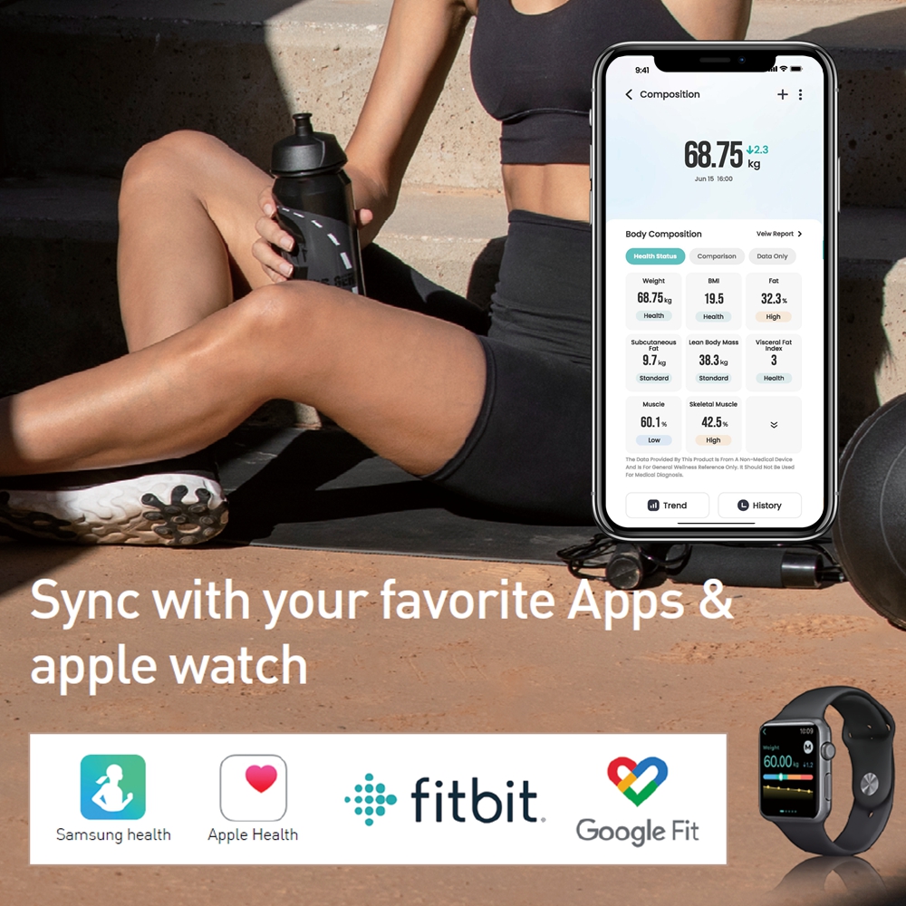 Seamlessly connect to your favorite third-party fitness apps, including Apple Health, Samsung Health, Google Fit and Fitbit, using advanced transmission technology to safeguard your privacy.