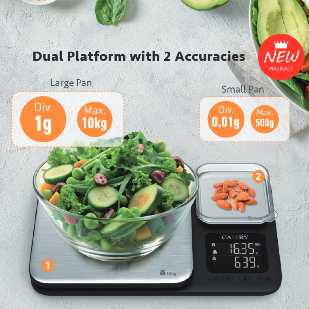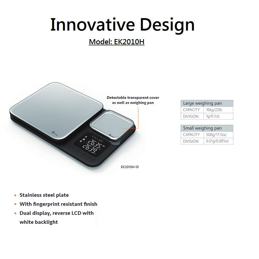 *Capacity: Large weighing panel 10kg/22lb-divison1g/0.1oz;
