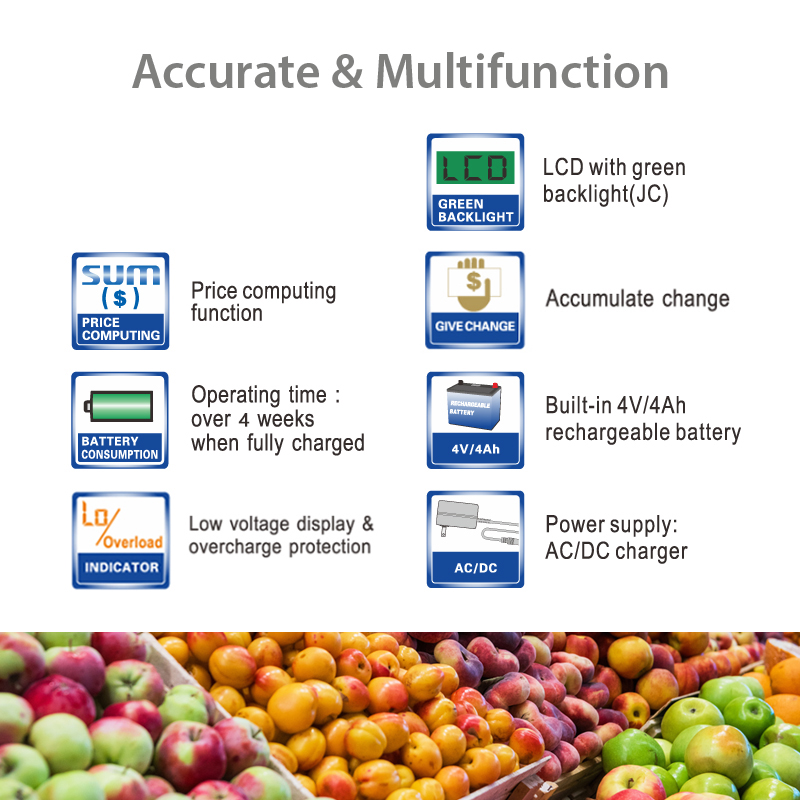 Accurate,multifunctional with green backlight LCD,price computing,long battery,AC/DC power,ideal for retail weighing.