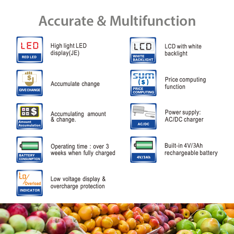 Accurate,multifunctional with LED/LCD display,price computing,long battery life,AC/DC power,ideal for retail weighing.