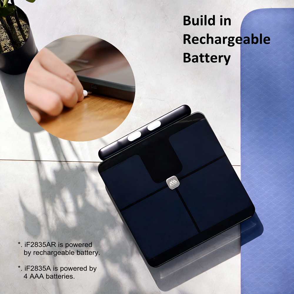 *. Typc-C charging port, built-in rechargeable battery for iF2835AR, powered by 4 AAA batteries for iF2835A;