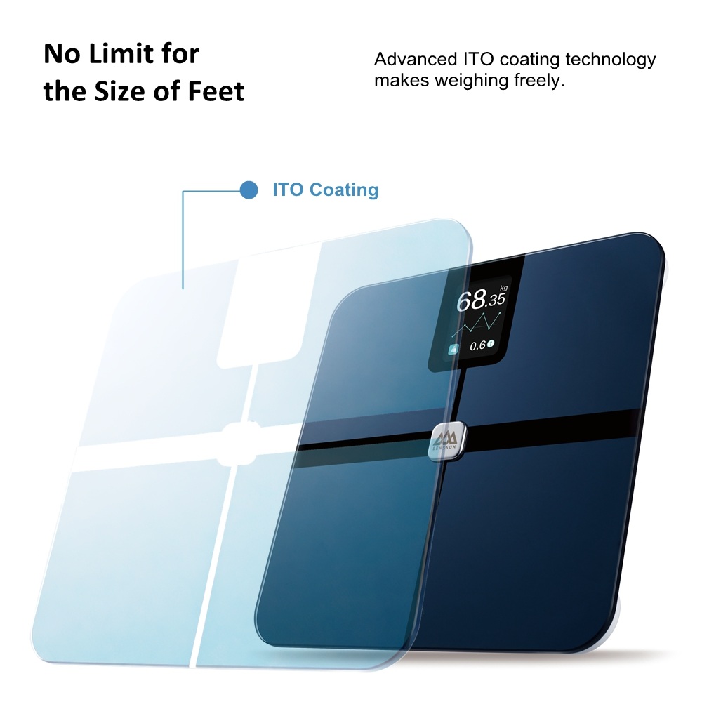 *. ITO coating technology, larger sensor coverage, fit all sizes of feet;