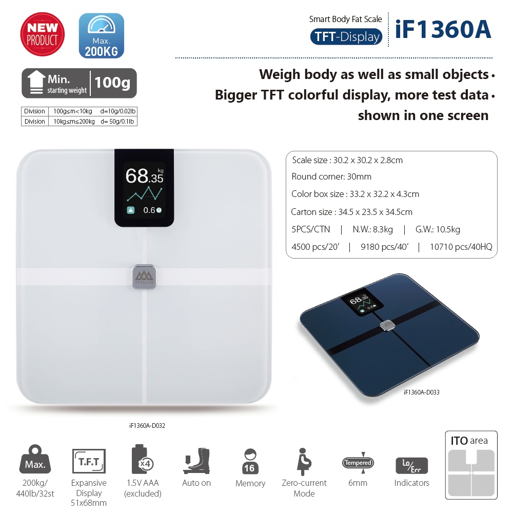 *. Smart Body Fat Scale 8-Electrode TFT-Display;